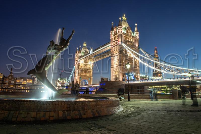 Canvas frameless "Tower Bridge". Wonderful scenery on the Tower Bridge and the monument.