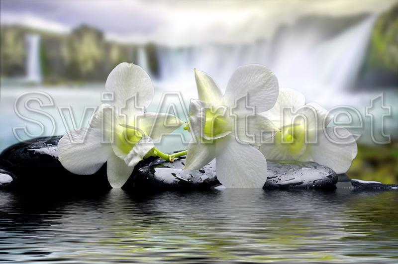 Canvas frameless "White Lilies". White lilies on the water.
