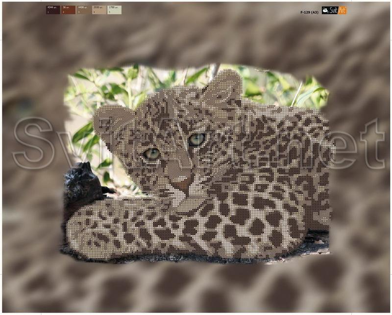 Magnet for embroidery with beads on canvas "Jaguar close-up". A graceful animal of the cat family lies on the background of greenery.
