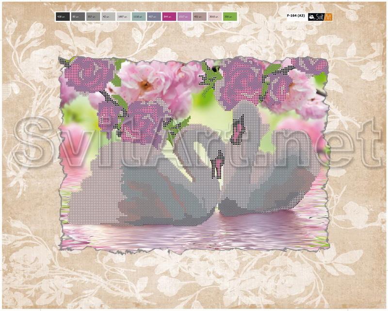 A pair of white swans and flowers - ХВ F-164