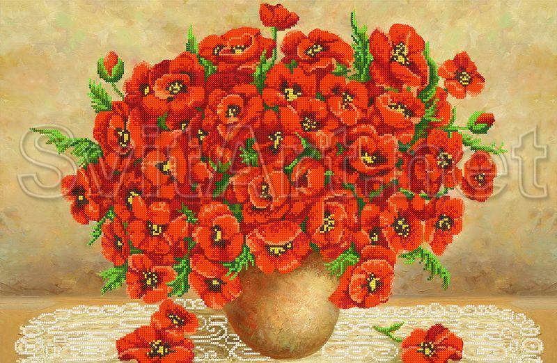 Scheme for embroidery with beads "Red poppies in a vase." Flowers - Red poppy. Bouquet of flowers.