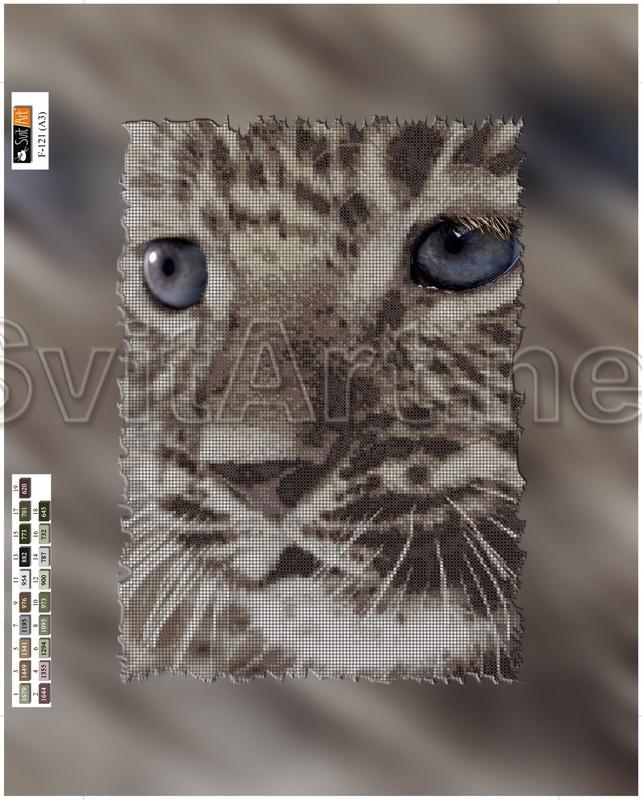 Magnet for embroidery with beads on canvas "Kitten of a leopard". Lovely little leopard muzzle close-up.
