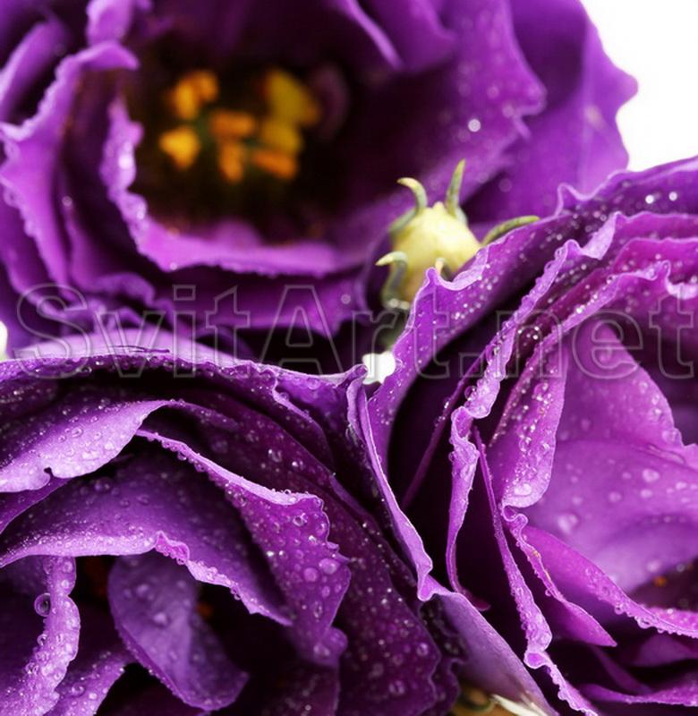 Canvas frameless "Violet flowers". Three beautiful flowers of intense purple color close-up.