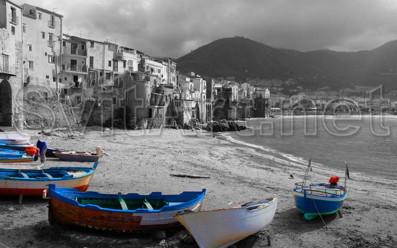 Canvas frameless "Embankment of Cefal в in gray tones." The shore of the Tyrrhenian Sea in the town of Cefal, which is located on the island of Sicily in the province of Palermo. Italy.