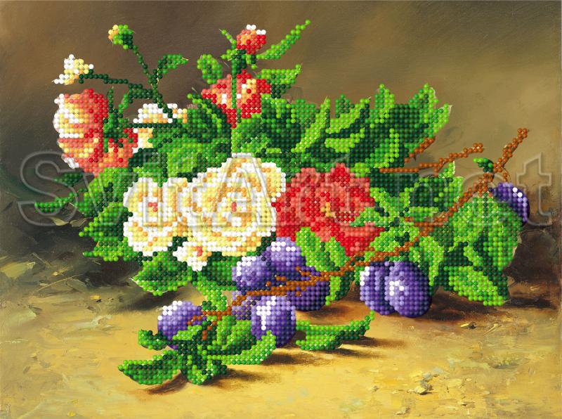 Patterns for embroidery with beads on gabardine and satin, Flowers and berries, roses and plums, plants, fruits