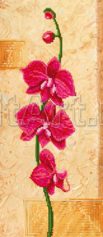 Scheme for embroidery with beads on gabardine and satin: Red orchid on a turquoise background, a blooming orchid on a turquoise background. Flowers - beautiful lonely orchid