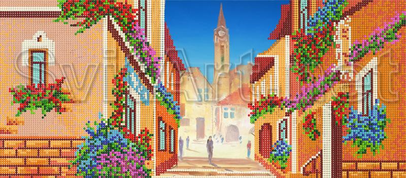 Diagram for embroidery with beads on gabardine and satin: City decorated with flowers, blooming city, city full of flowers, Architecture: decorations city