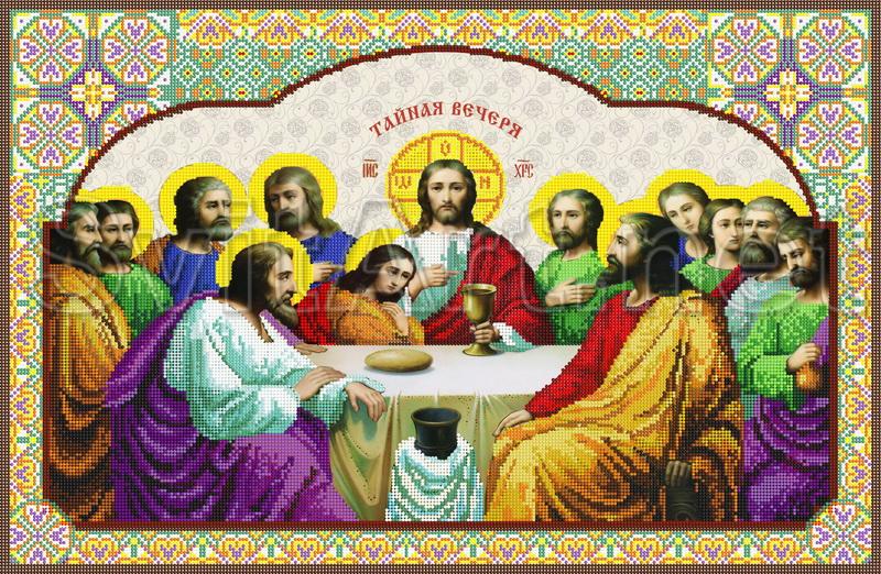 Scheme for embroidery with beads on gabardine A2 (38x58) "Icon of the Twelve Apostles". Icon of the Twelve Apostles with a yellow frame.