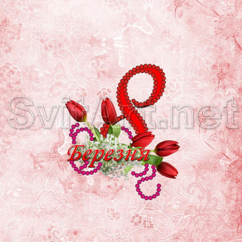 The eighth of March on a pink background with tulips - M-045