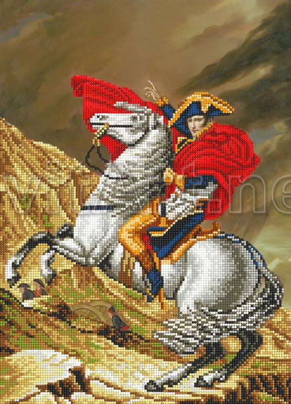 Scheme for embroidery with beads on gabardine and satin: Terrible Napoleon on a gray horse, Napoleon in combat, Napoleon on a stallion. People - Napoleon on horseback