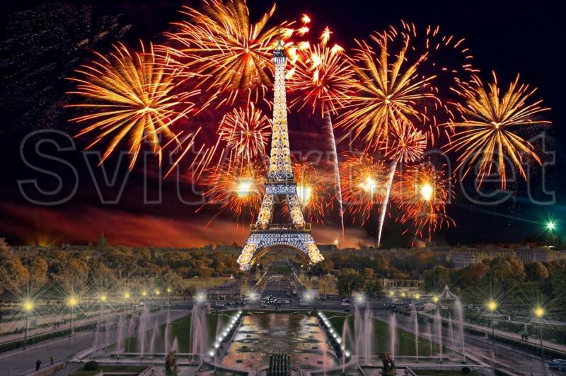 Canvas frameless "Eiffel Tower and Salute." The Eiffel Tower at night and lots of fireworks around.