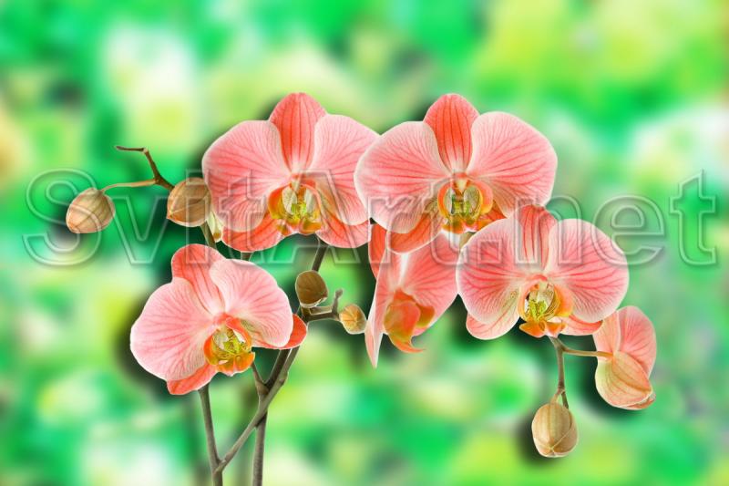 Branch of pink orchids on the field of flowers - F-289