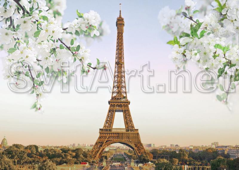 Eiffel Tower and branches of flowering trees on the edges - F-295