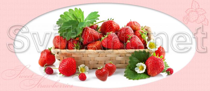 Canvas frameless "Plate with strawberries". The plate is up to the top and even more filled with strawberries and a couple of leaves.