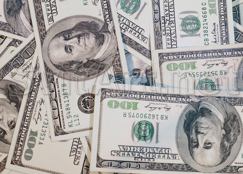 Canvas Frameless "Dolari aproape." O scatter de bancnote de aproape 100 de dolari.