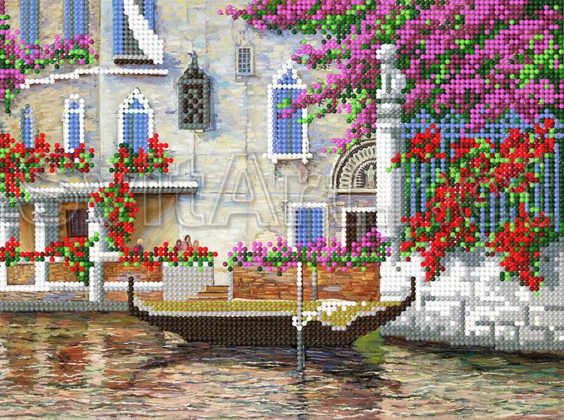 scheme pentru beadwork pe gabardina si satin, Gondola langa casa, casa în Veneția, grădini înflorite