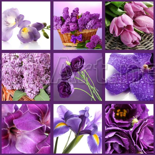 Canvas Frameless "Colaj de flori." Colaj de nouă flori violet diferite.