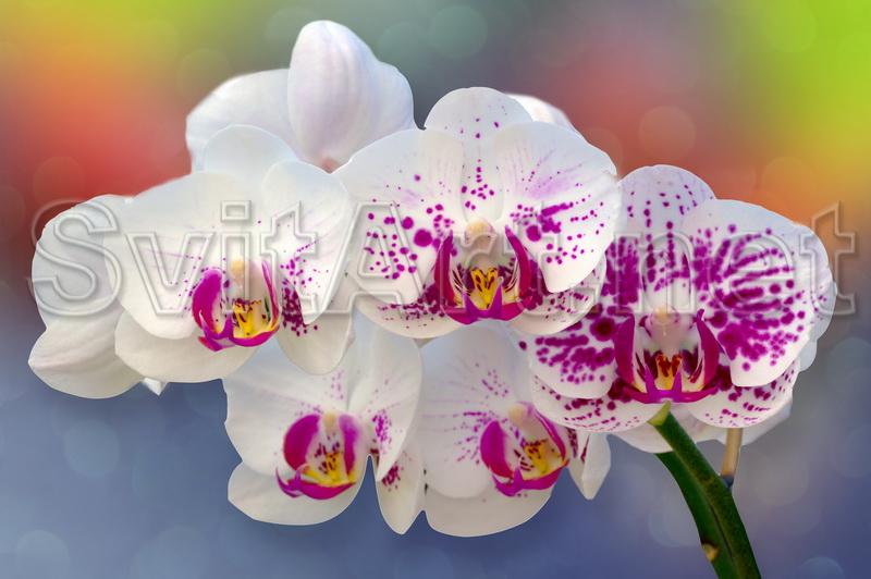 O ramură de orhidee alb-roz pe un fundal multicolor - F-214