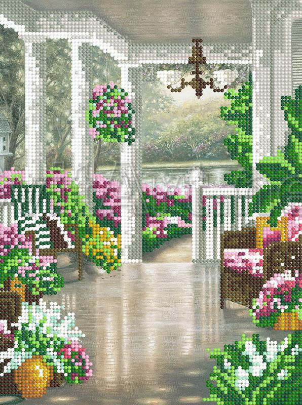 schema pentru broderie cu margele pe gabardina satin si Betsi Braun - duminică, în stil mediteranean, flori în borcane