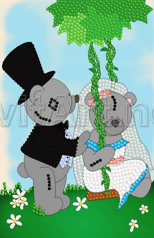 Informaţii suplimentare: Schemă pentru broderie cu margele pe gabardină și satin "Bears - newweds". O pereche de urși de desene animate, Unul în haina de rochie și unul într-o rochie de mireasă.