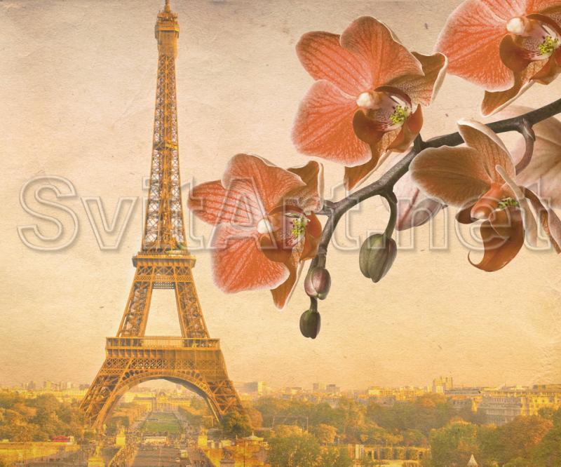 Picture-Turnul Eiffel și o ramură de flori - F-296