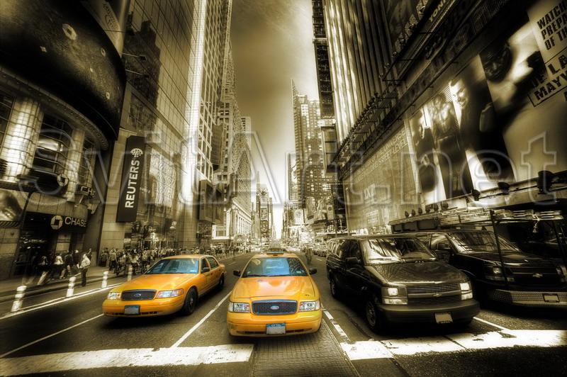 Доп. информация: Холст Желтые машины, чёрная машина, машины такси, ночной город, городская дорога