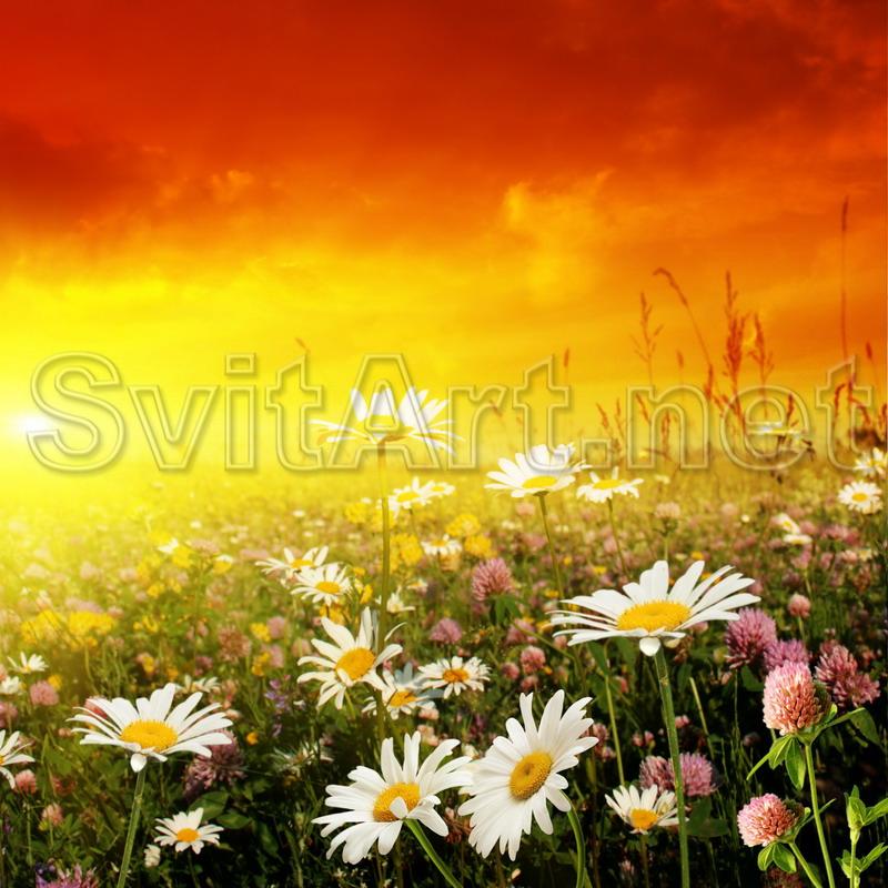 Доп. информация: Холст Цветочное поле, ромашковое поле, поле с цветами, закат в поле