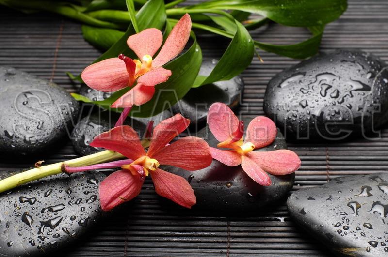 Доп. информация: Холст Бледно - красные цветы и черные камни, цветы,зелень и камни, красные цветы на черном фоне