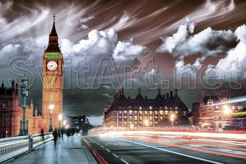 Доп. информация: Холст безрамный "Ночной Биг Бэн". Знаменитые Лондонские часы ночью.