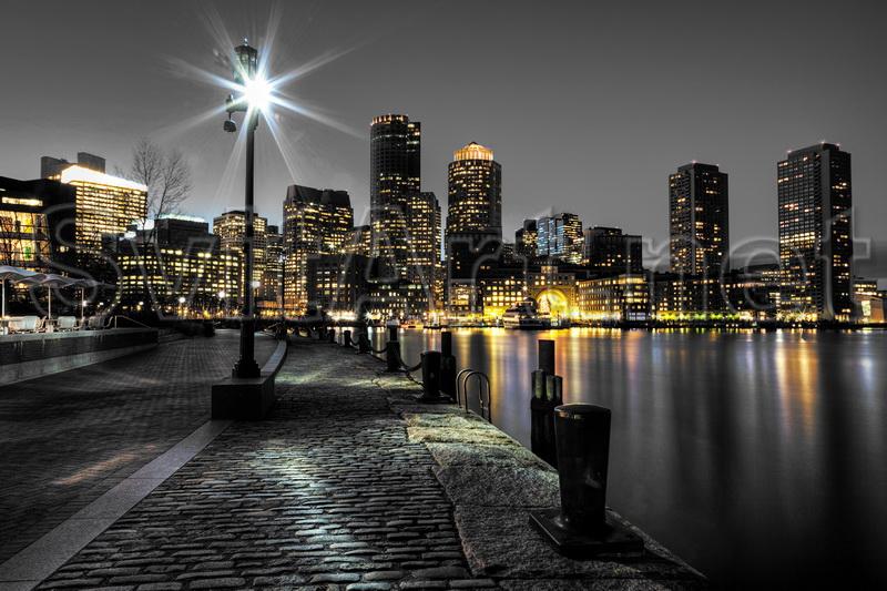 Доп. информация: Холст безрамный "Ночной город в серых тонах". Яркие огни города в ночи, фонарь у воды.