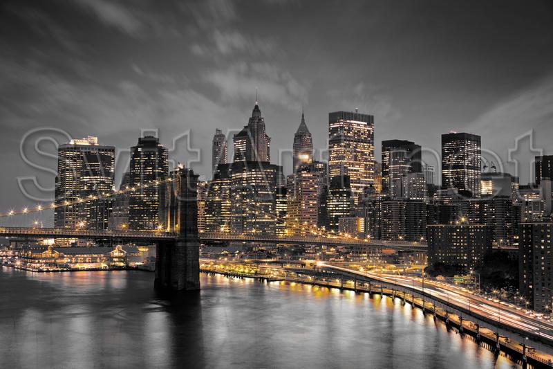Доп. информация: Холст безрамный "Нью Йорк в серых тонах". США, Нью Йорк, мост через Ист Ривер.