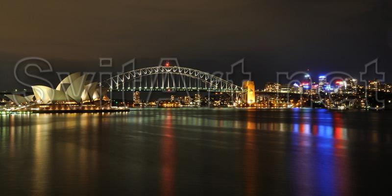 Доп. информация: Холст безрамный "Ночной Сидней". Пейзаж на Сиднейский оперный театр, мост, бухту и яркие огни ночного города.