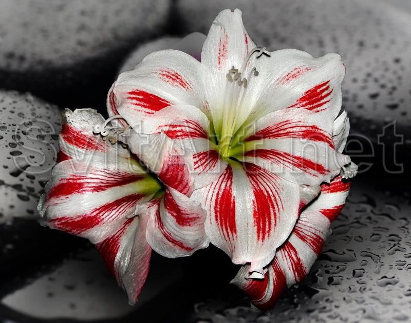 Доп. информация: Холст безрамный "Азиатская лилия". Три полосатых лилии на мокрых камнях.