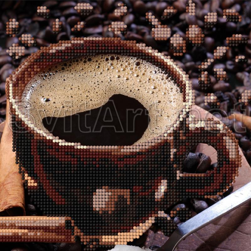 Доп. информация: Схема для вышивки бисером на габардине и атласе: Крепкий зерновой кофе, чашка ароматного кофе на столе. Натюрморты, фото - черный кофе с корицей.
