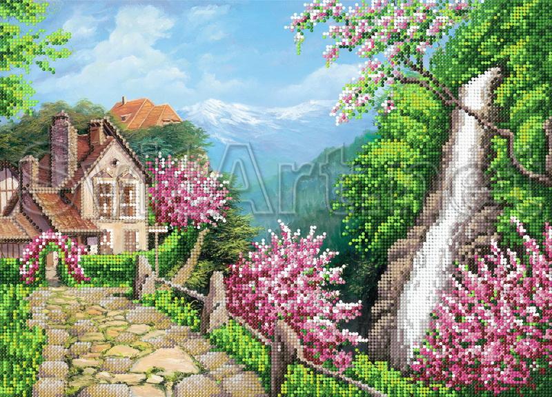 Доп. информация: схемы для вышивки бисером на габардине и атласе,Каменная дорога к дому,деревья и кусты,сад возле дома,домик в лесу