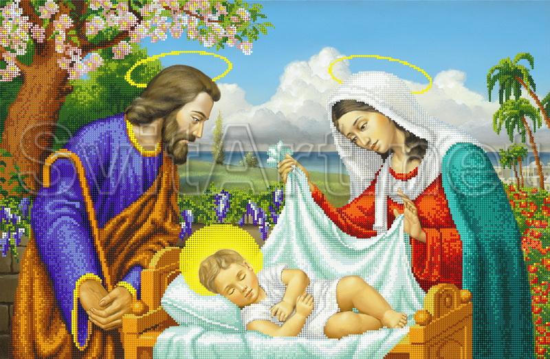 Доп. информация: схемы для вышивки бисером на габардине и атласе,Святое семейство,Иосиф,мария,маленький Иисус,рождение Христа
