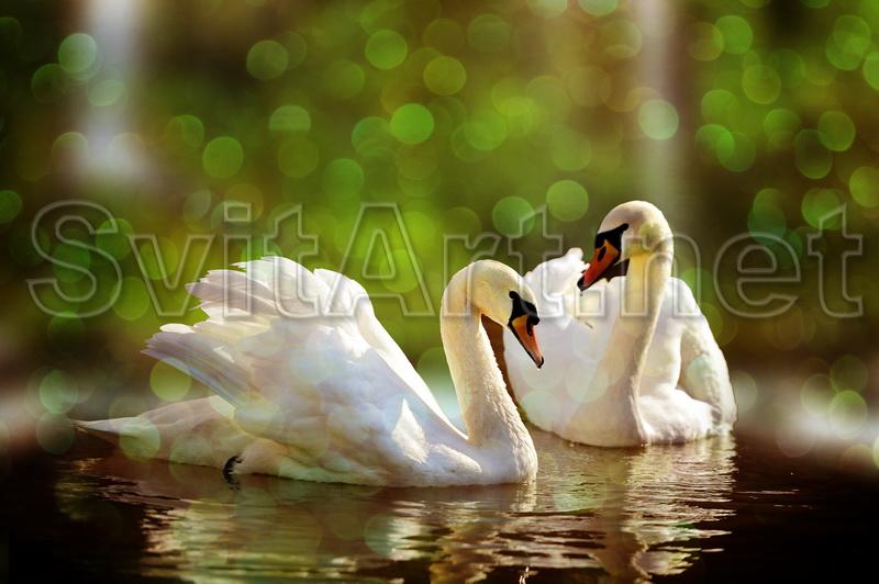 Доп. информация: Холст безрамный "Пара белых лебедей весной". Двое прекрасных белых лебедей на воде.