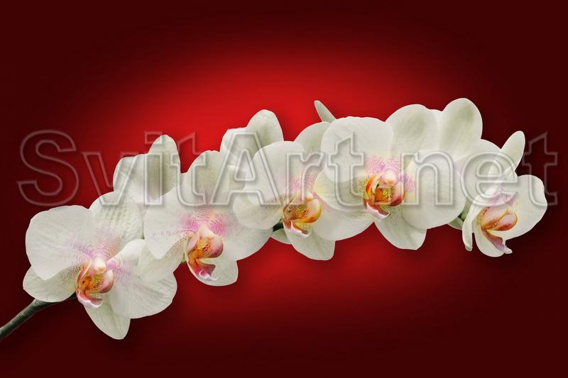 Доп. информация: Холст безрамный "Веточка белой орхидеи". Нежные цветки белой орхидеи на зеленом стебле на красном фоне.