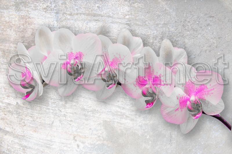 Доп. информация: Холст безрамный "Веточка белой орхидеи на сером фоне". Нежные цветки белой орхидеи с легким розовым оттенком в центре цветка на матовом сером фоне.