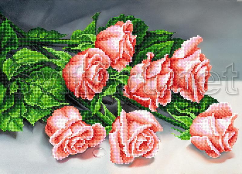 Доп. информация: Схема для вышивки бисером на габардине и атласе: букет роз на столе, семь роз, букет цветов. Цветы - розы