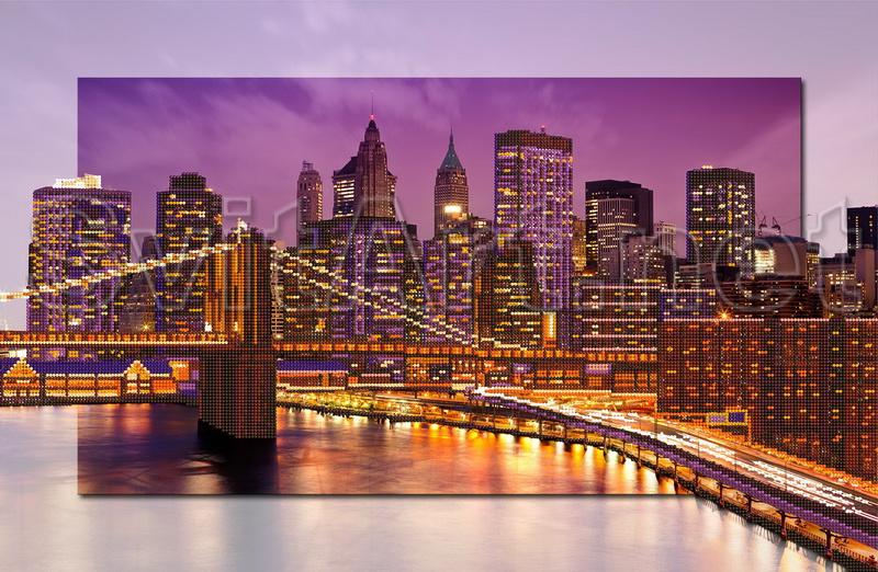 Доп. информация: Схема для вышивки бисером на габардине А2 (38х58) "Бруклинский мост". США, Нью Йорк, мост через Ист-Ривер.