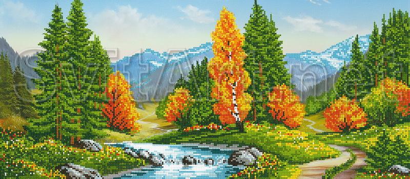 Доп. информация: Схема для вышивки бисером на габардине и атласе: природа, река возле гор, осенний пейзаж, недалеко от гор. Пейзаж - река возле гор