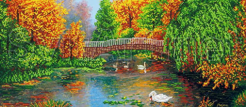 Доп. информация: схемы для вышивки бисером на габардине и атласе Деревья возле озера, осенний лес,озеро в лесу