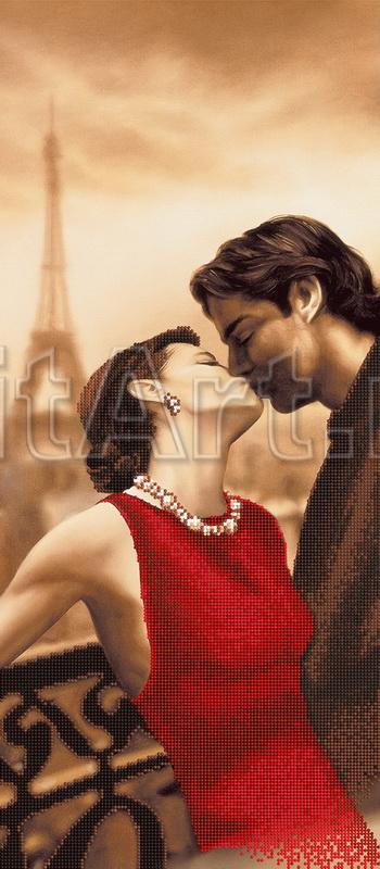 Доп. информация: схемы для вышивки бисером на габардине и атласе,Двое влюбленных, пара на фоне Эйфелевой башни, мужчина и женщина целуются