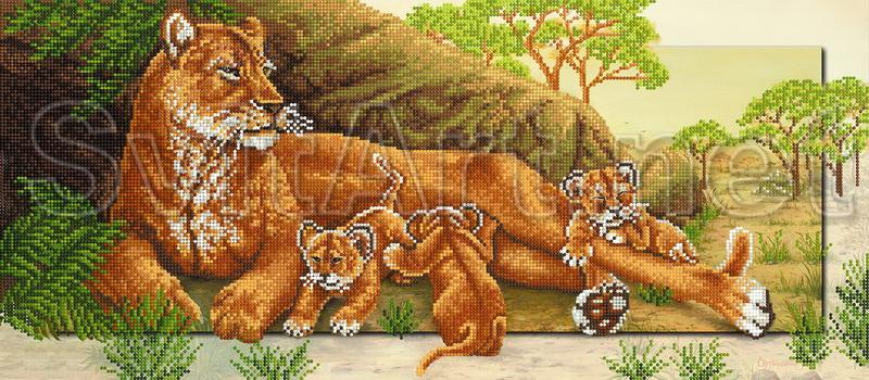 Доп. информация: схемы для вышивки бисером на габардине и атласе,Тигрица с детенышами,саванна,выводок тигров