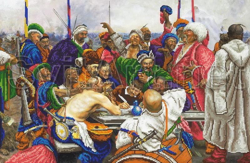 Доп. информация: схемы для вышивки бисером на габардине и атласе Казаки пишут письмо хану,козаки за столом, средневековая картина