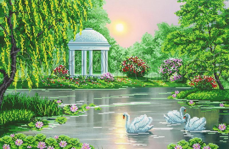 Доп. информация: Схема для вышивки бисером на габардине и атласе: Три прекрасных лебеди на озере, трое лебедей на природе. Пейзажи - Трое лебедей на озере