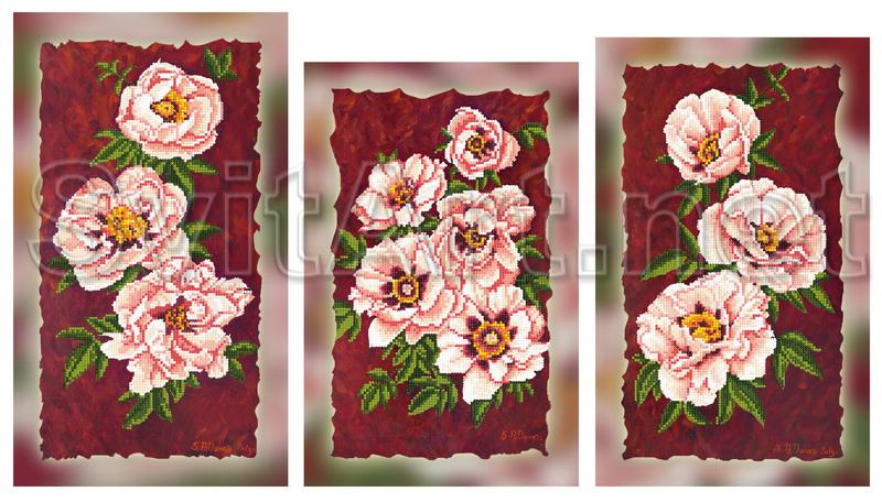 Доп. информация: Магнит для вышивания бисером на холсте модульный триптих "Светло-розовые цветы". Три ветки больших раскрытых цветов нежного светлого розового цвета.
