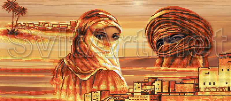 Доп. информация: схемы для вышивки бисером на габардине и атласе,Город в пустыне,жители востока,мужчина и женщина,оазис