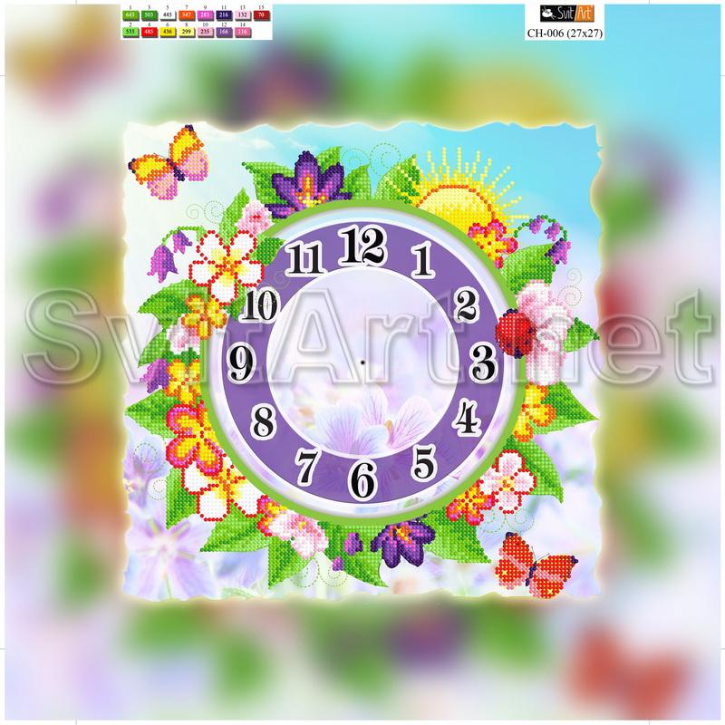 Доп. информация: Магнит для вышивания бисером на холсте "Фиолетовые часы с цветами". Фиолетовые часы на лиловом фоне внутри множества разноцветных цветов и бабочек.